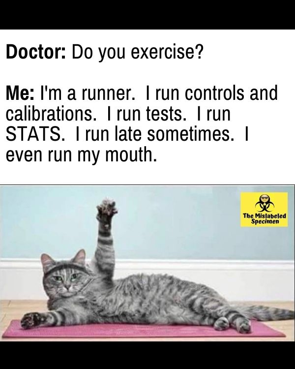 This is our kind of workout plan. It perfectly captures the lab professional’s daily marathon.