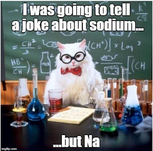 A fan favorite from Chemistry Cat. You can’t have a lab humor round-up without a visit from the iconic Chemistry Cat. This one is a periodic table classic that never gets old. We’re not sorry for this one… Na.