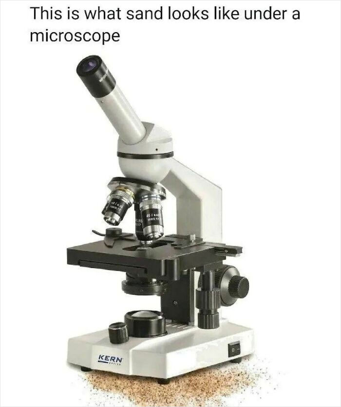 Fascinating, this is what sand looks like under the microscope! This is a meme for the laboratory pro who appreciates a perfectly literal, eye-rolling, “groaner” of a joke. This one got a lot of comments for its simplicity and technical accuracy.