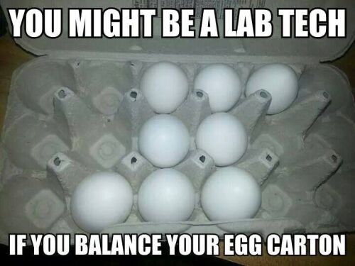 Someone’s egg carton needs re-arranging…Another fan favorite that proves you can shake lab life. You might be a lab tech if you feel a deep, unquestioning need to balance your egg carton. Heck, we wouldn’t be surprised if you had your family or friends doing this, too.